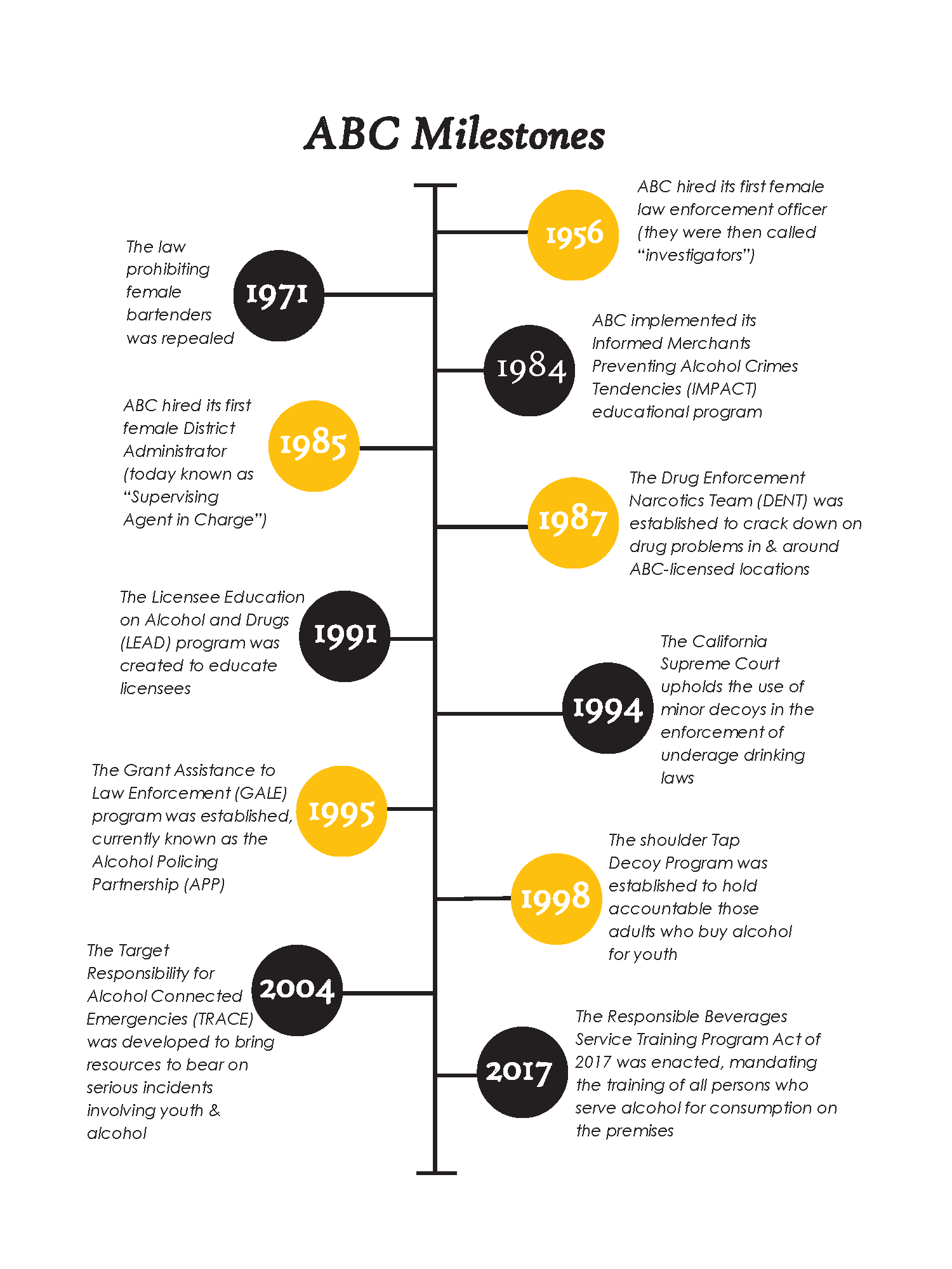 Implementing RBS training in the nation’s largest state is a huge feat for the California ABC. It is also the most recent of many milestones that illustrate how the ABC has advanced its mission of protecting California’s communities. These are a few of the ABC’s noteworthy milestones: